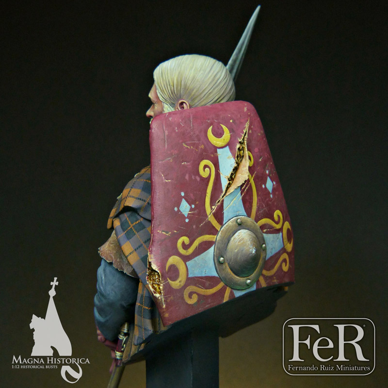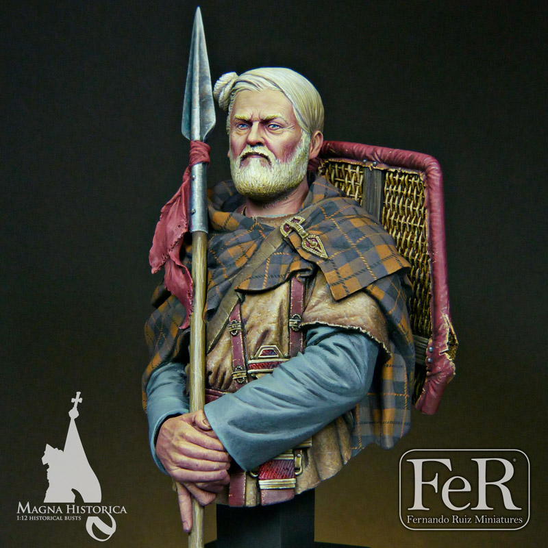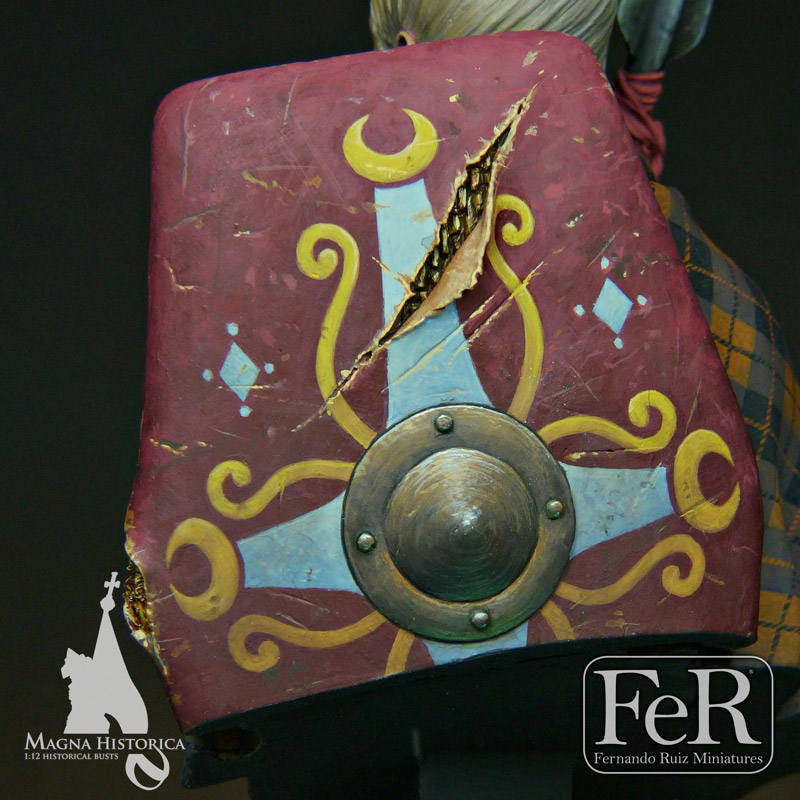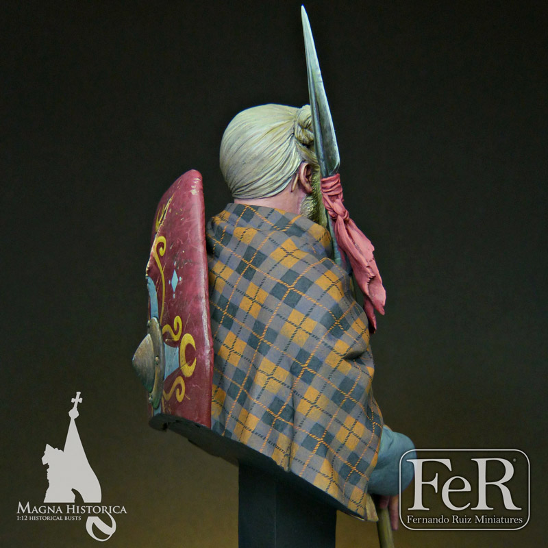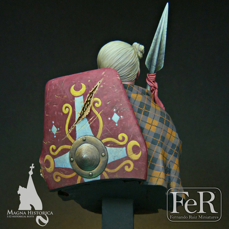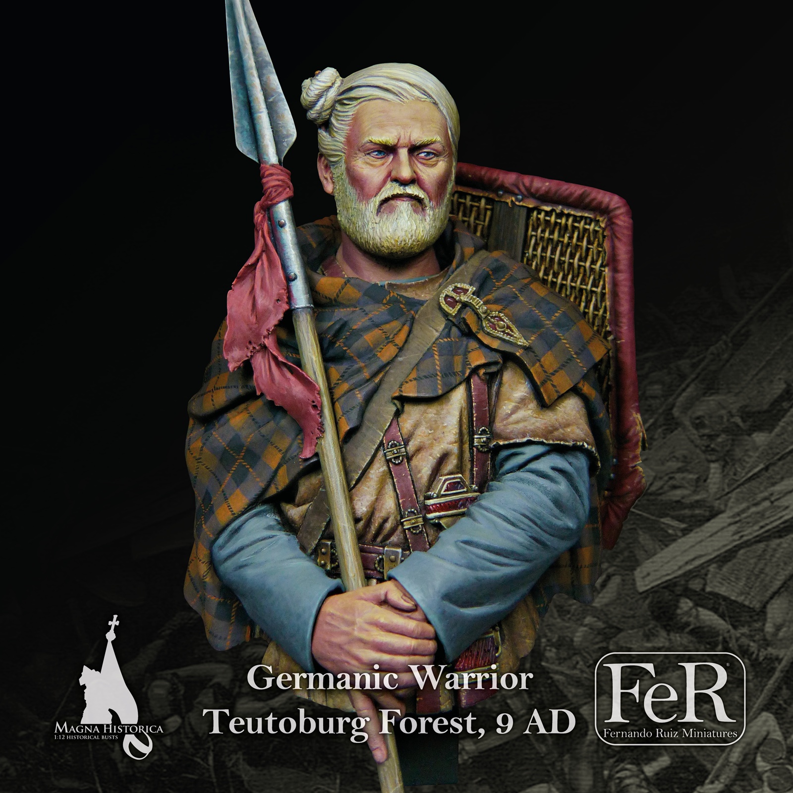 Our figure depicts one of those fierce tribal warriors, armed with lance, sword and shield, possibly waiting along with the rest of the Germanic force in the forest for the right moment to attack the Roman columns.